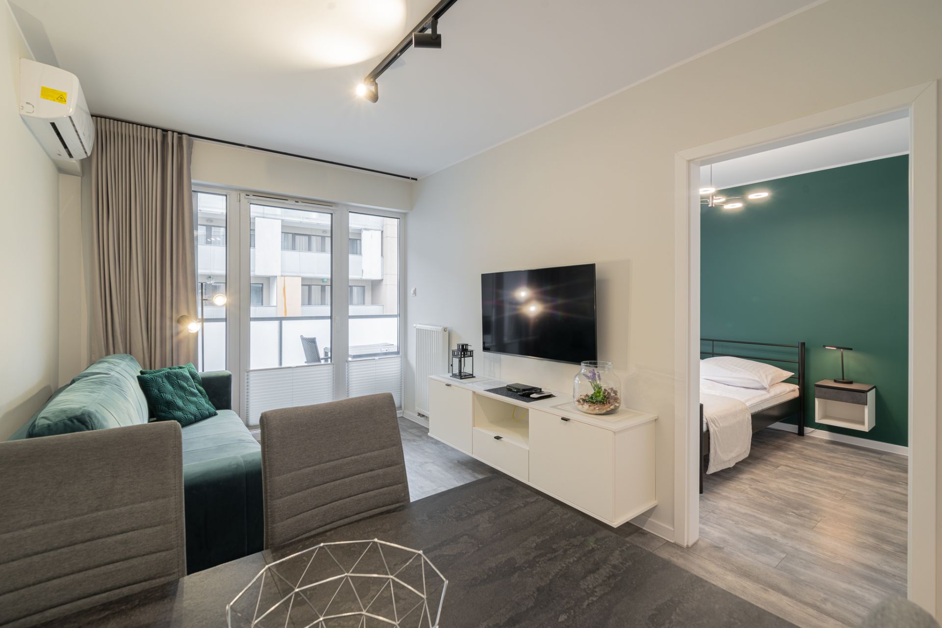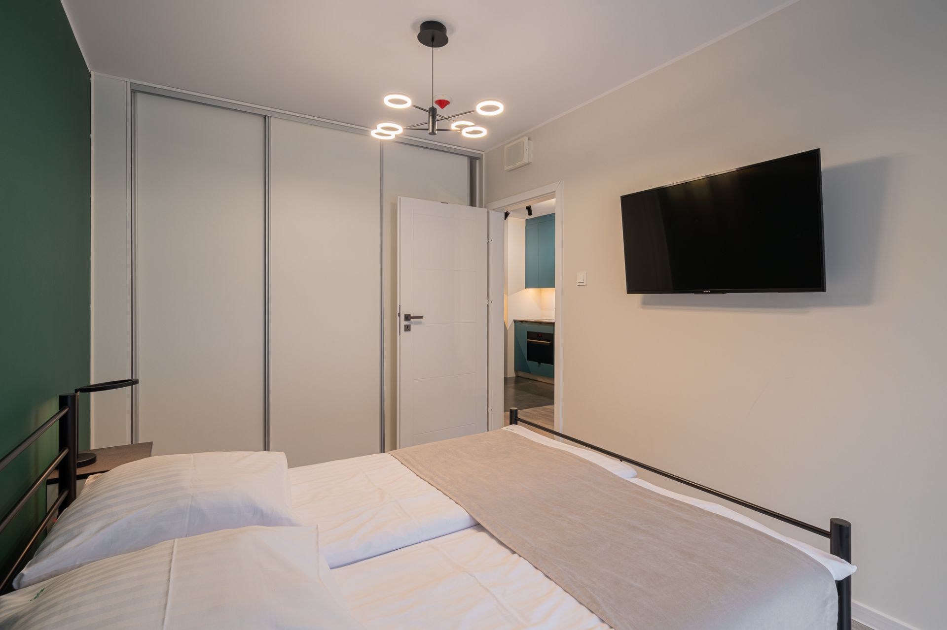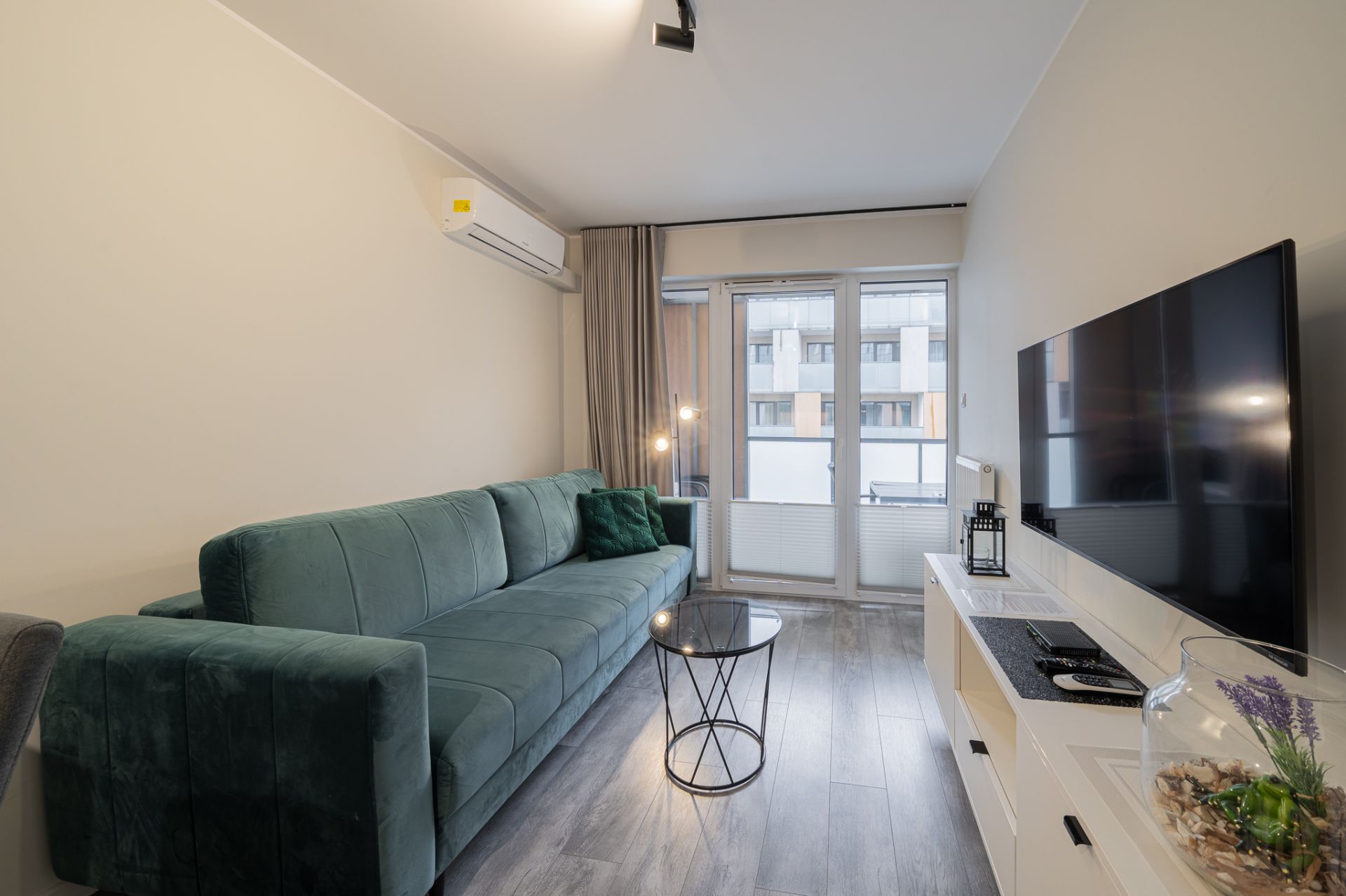 W salonie czeka wygodna sofa i duży telewizor, a w sypialni – komfortowe łóżko i klimatyzacja, która zapewnia ulgę w ciepłe dni.