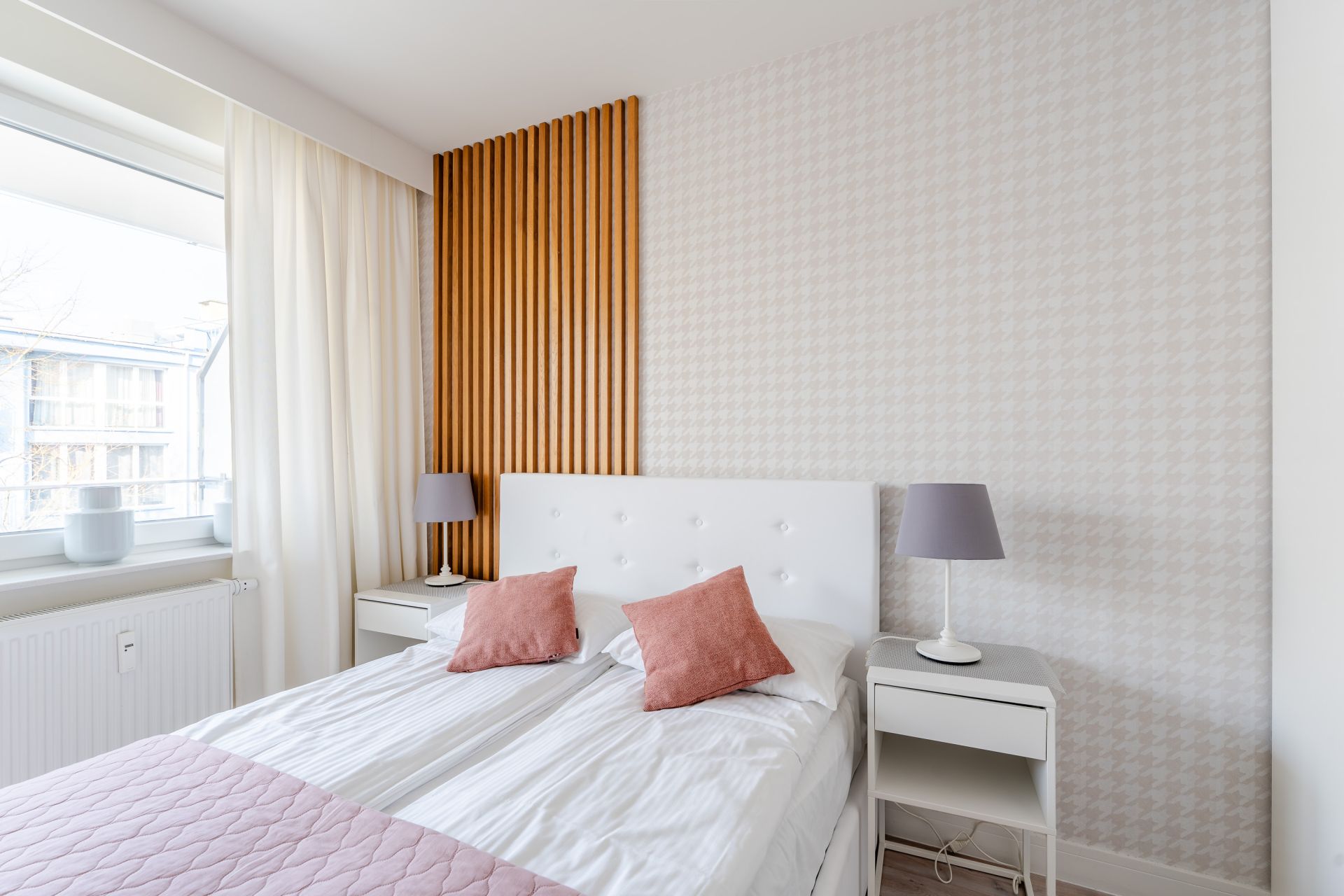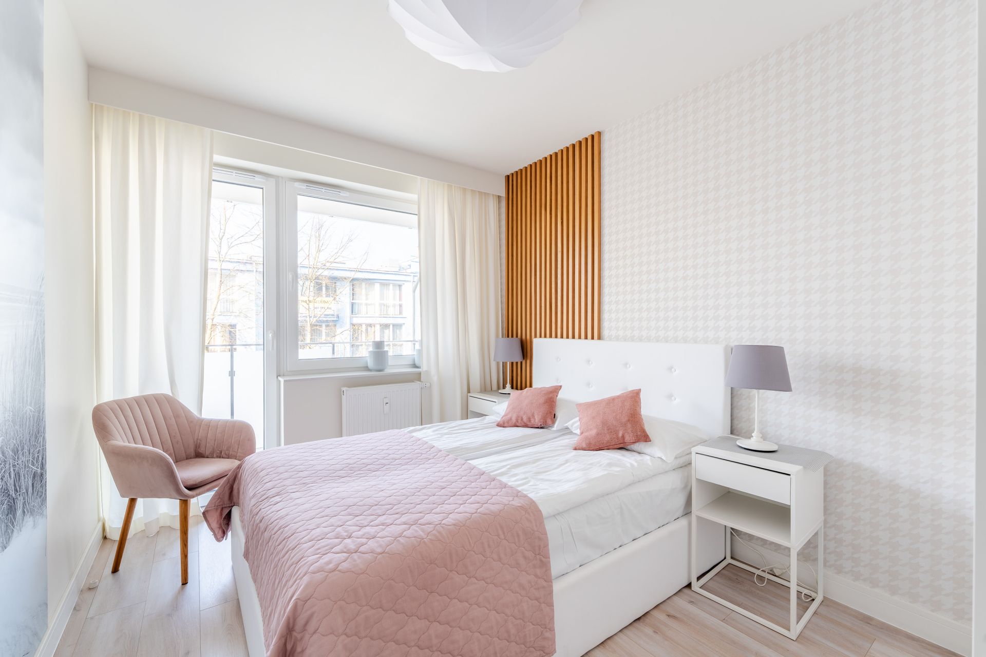 Sypialnia oferuje duże, wygodne łóżko i przestrzeń do spokojnego wypoczynku, a nowoczesna łazienka z prysznicem zapewnia codzienny komfort.
