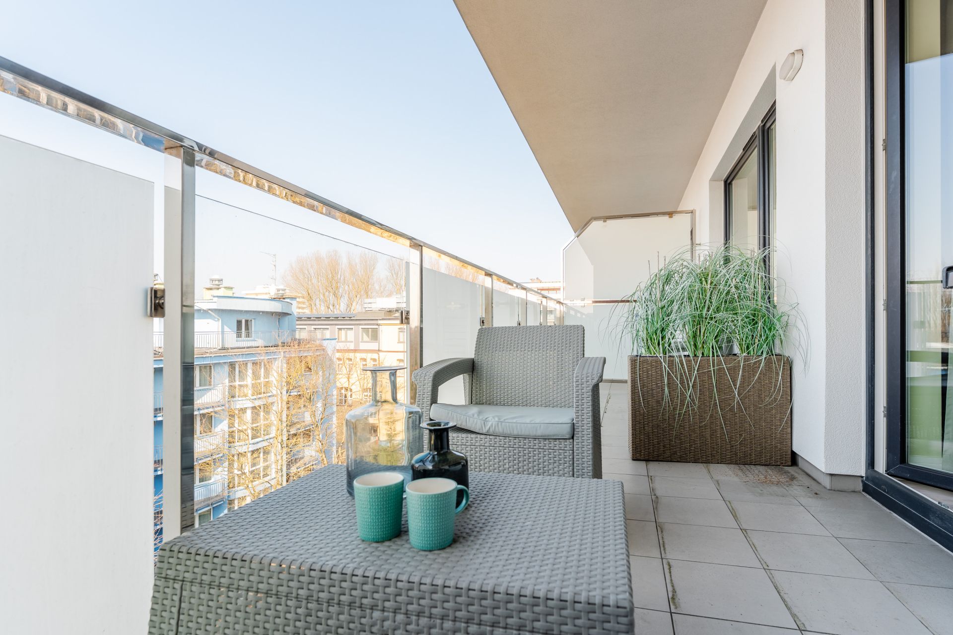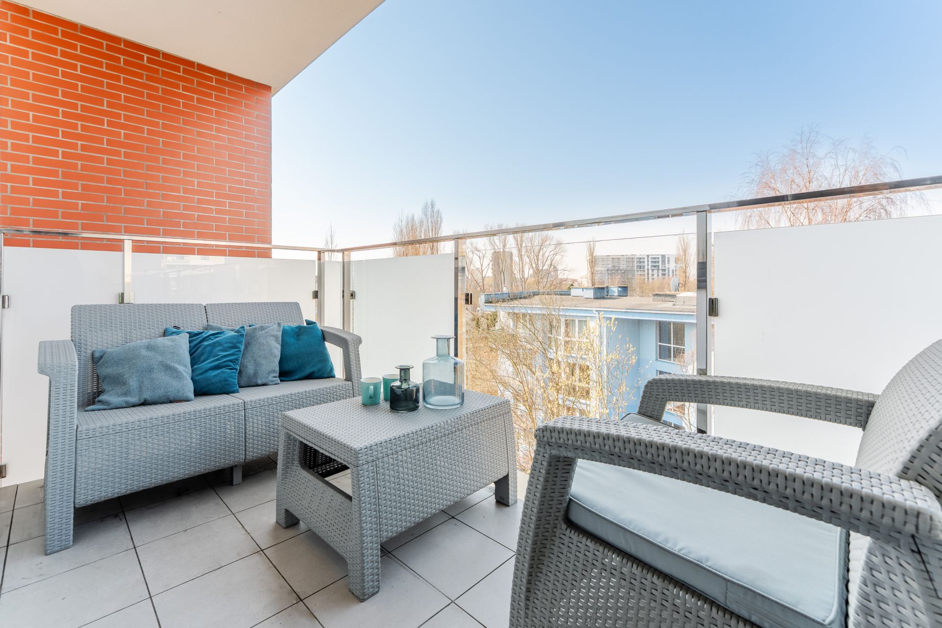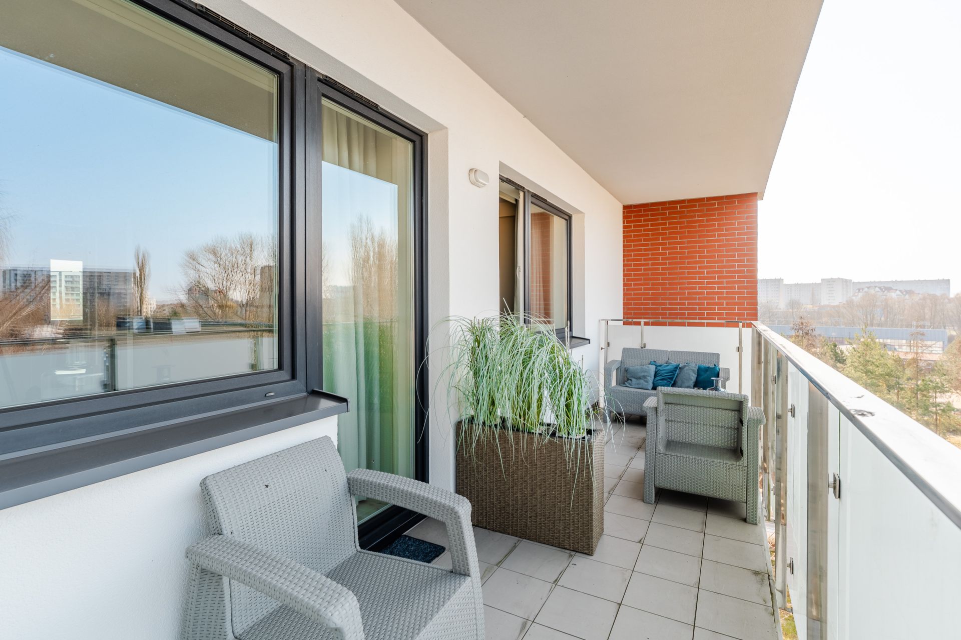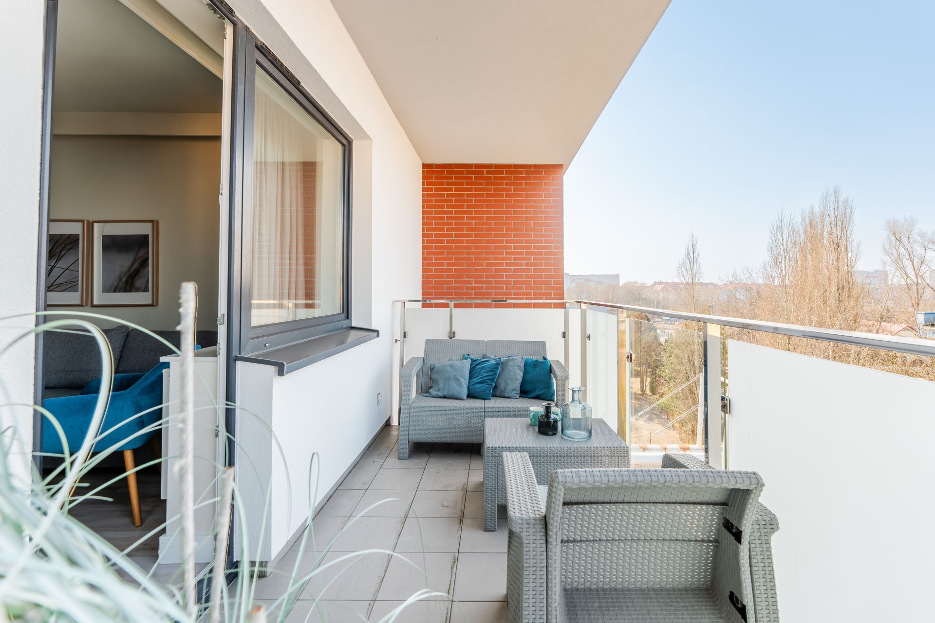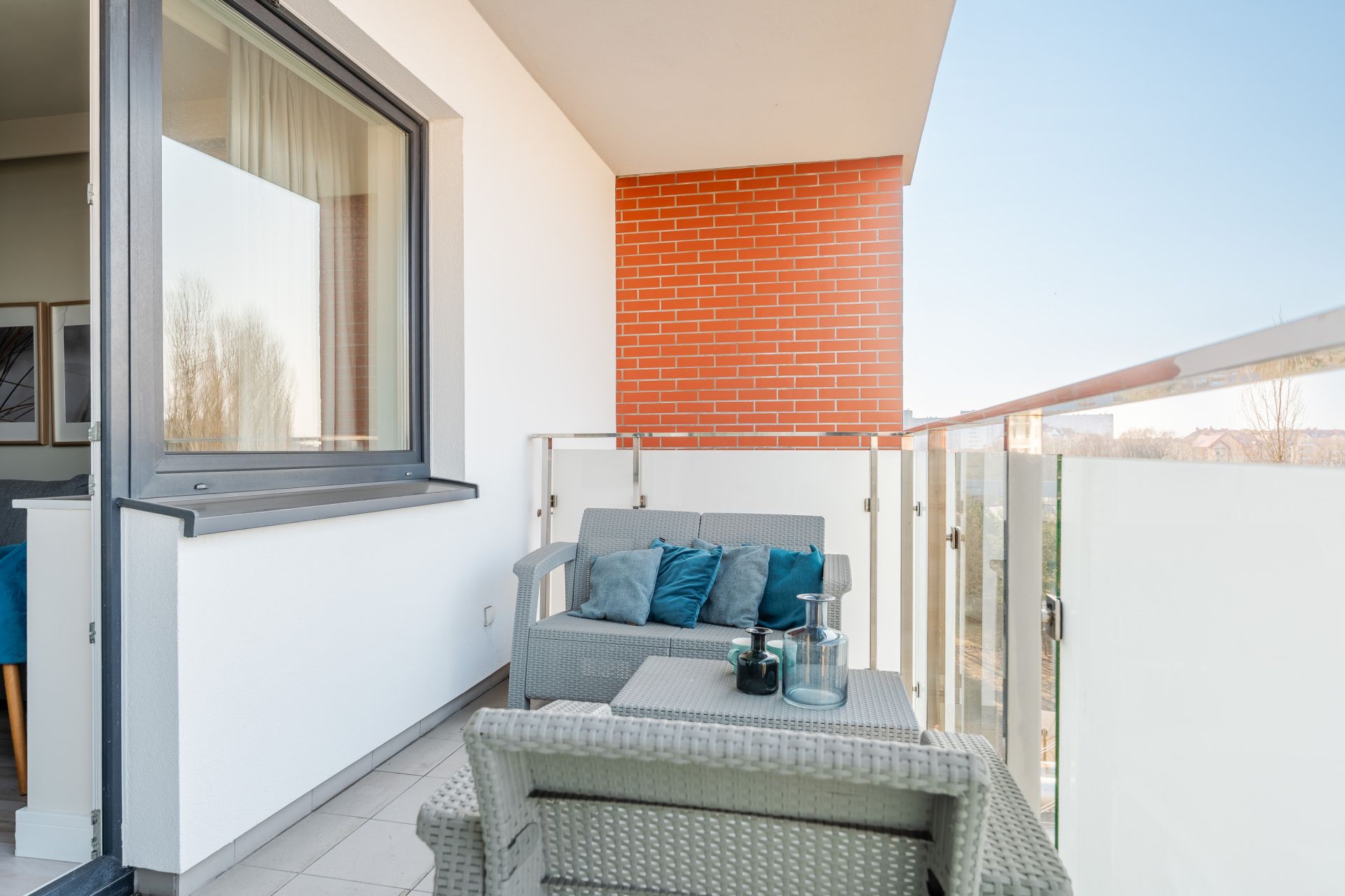 Z salonu wychodzi się na balkon, idealny na relaks z kawą lub książką.