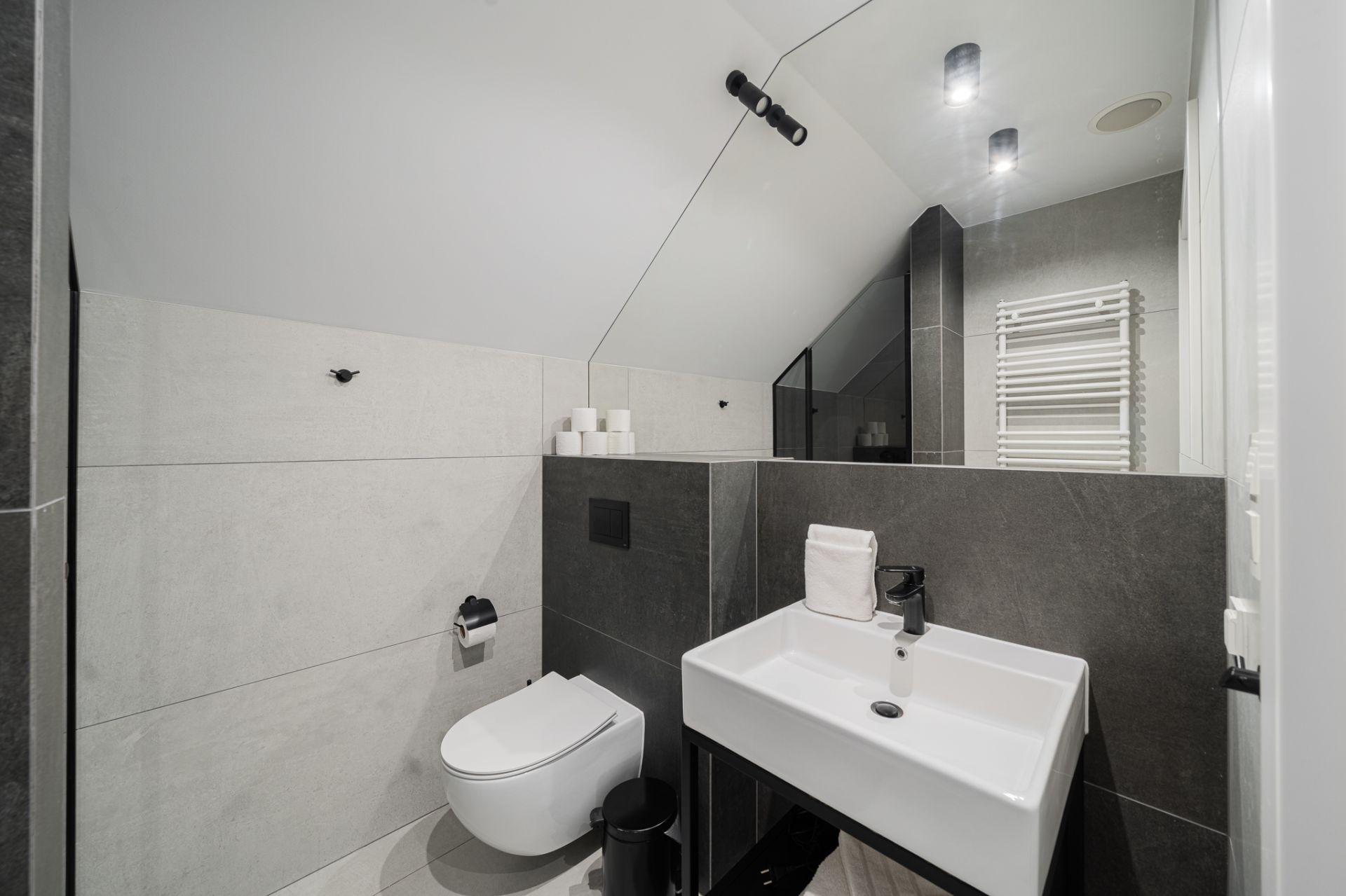 Łazienka: prysznic, nowoczesna armatura, pełne wyposażenie niezbędne podczas pobytu