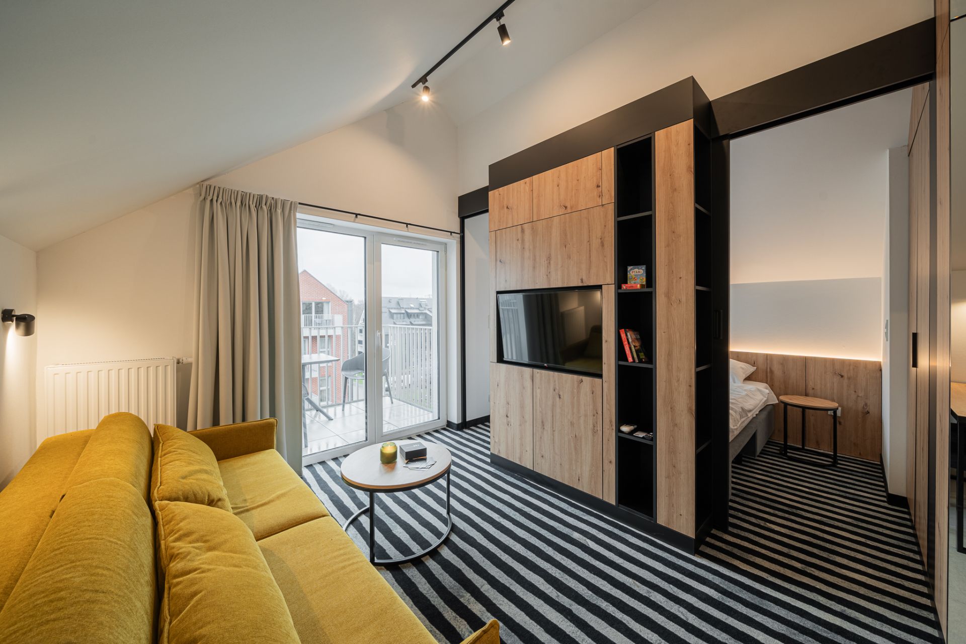 GreenPort 517 to komfortowy, jasny apartament, idealny na pobyt blisko natury, a jednocześnie w nowoczesnym obiekcie z własną strefą rekreacji. Basen, sauna, jacuzzi, siłownia i bawialnia dla dzieci dostępne są w budynku — bez konieczności wychodzenia na zewnątrz.