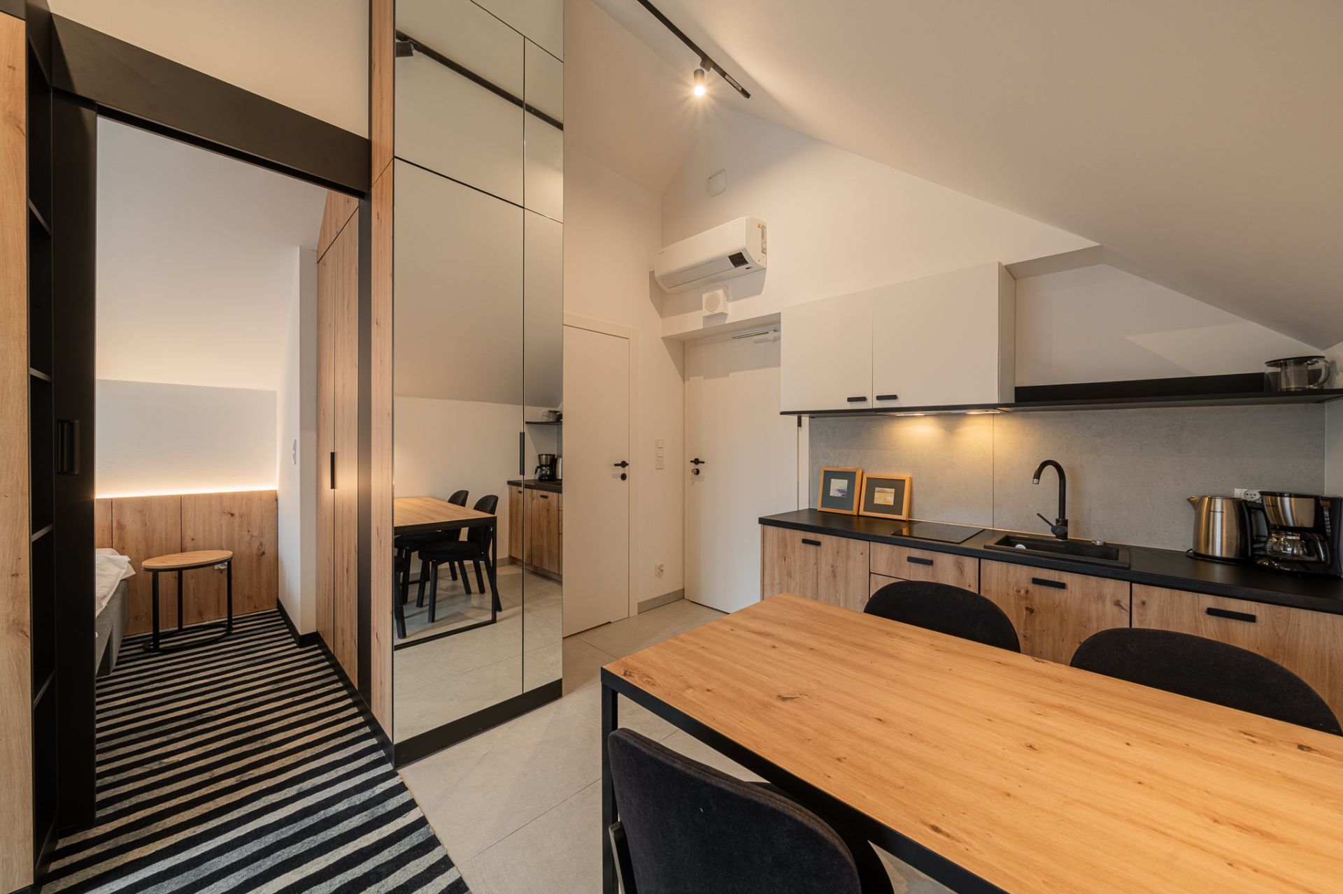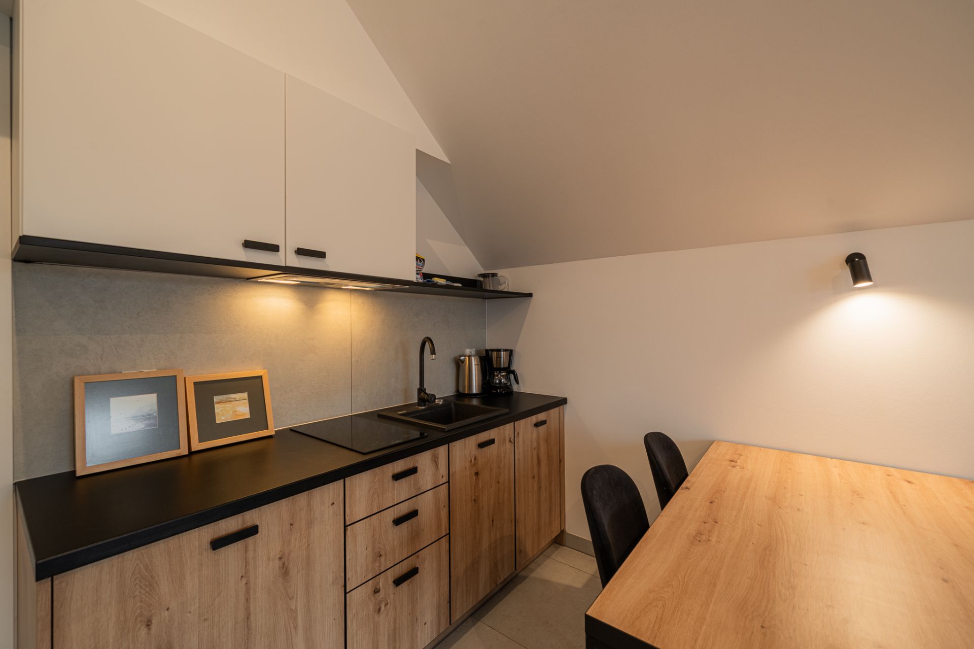Aneks kuchenny: płyta indukcyjna, czajnik, zmywarka, lodówka