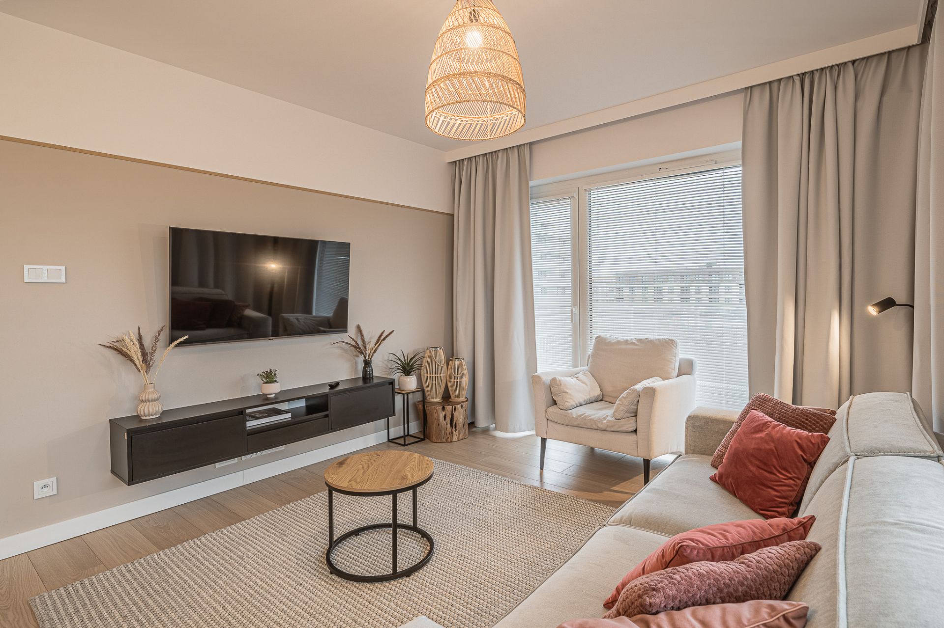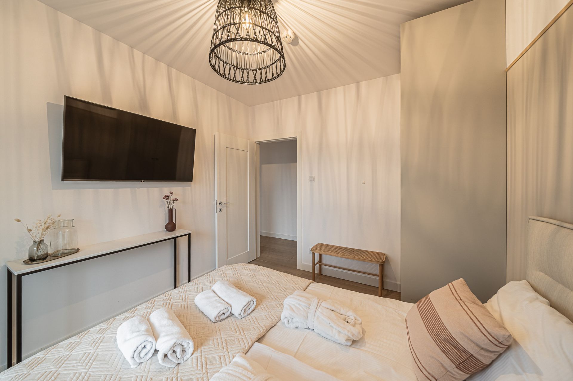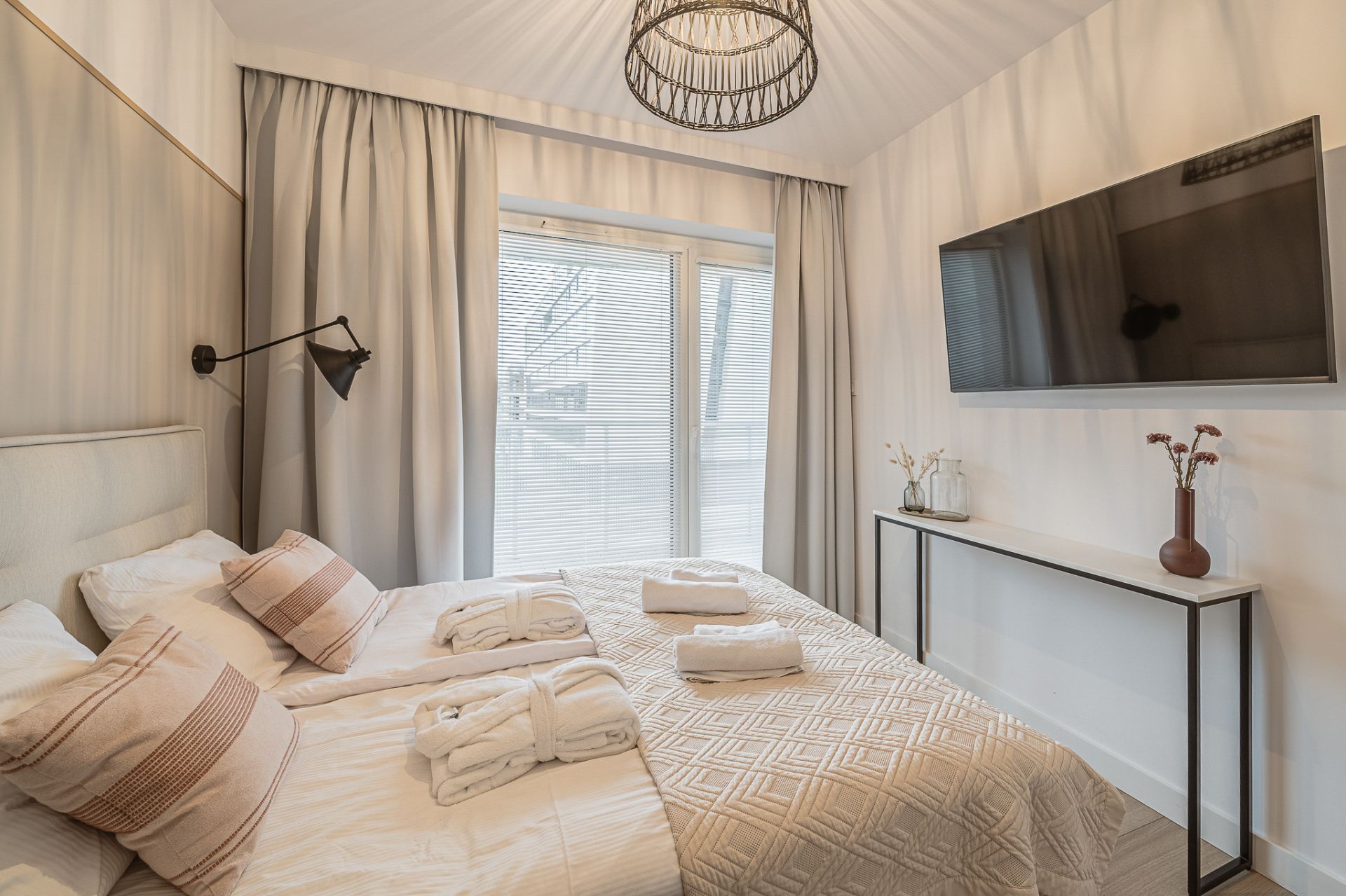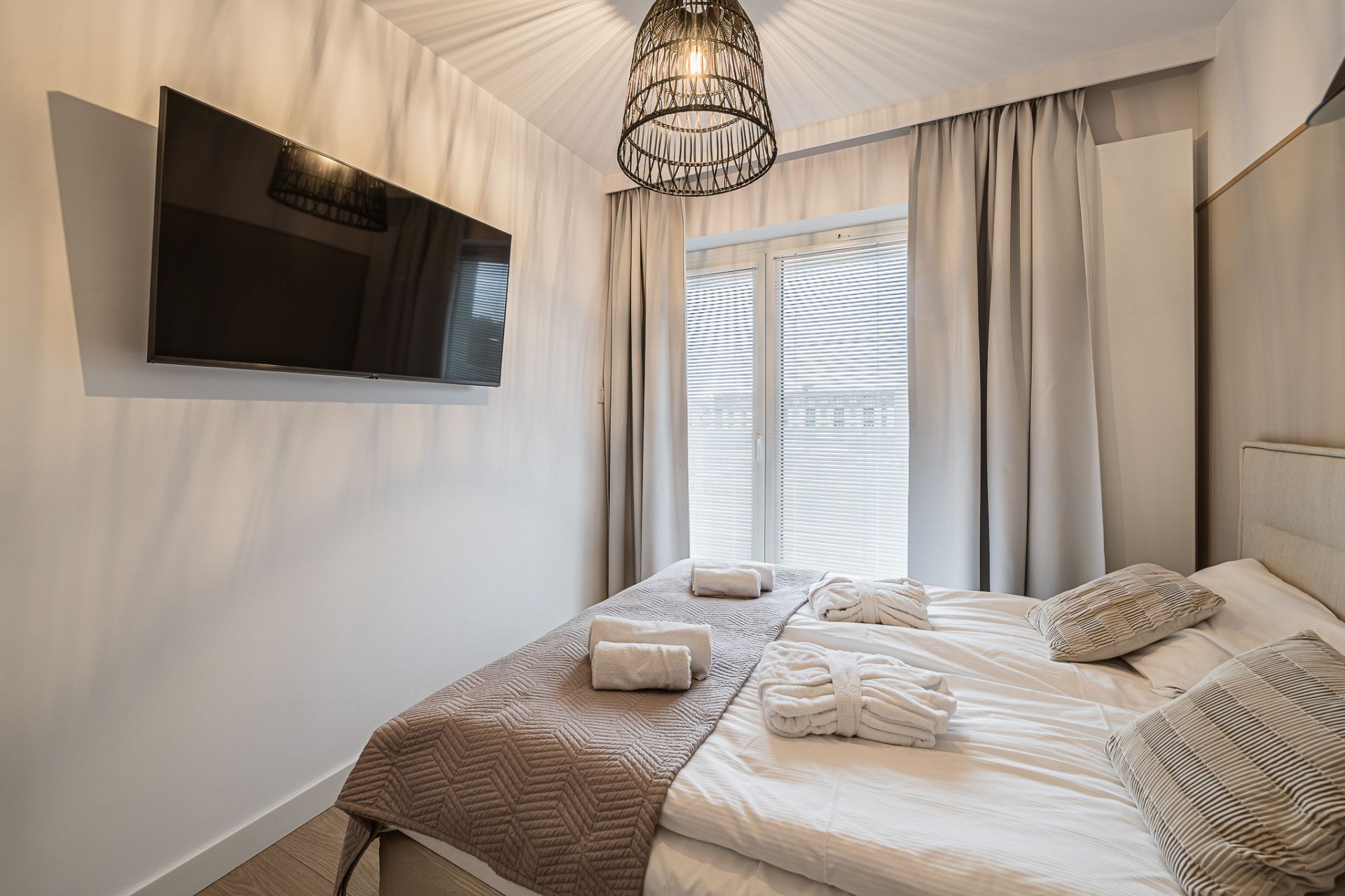 Dwie osobne sypialnie, każda z dużym łóżkiem małżeńskim i telewizorem, gwarantują prywatność i komfort – rodzice, dzieci, dziadkowie czy przyjaciele mogą odpoczywać we własnym rytmie.