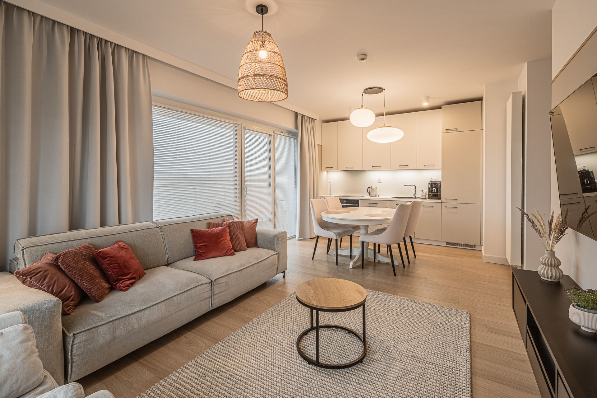 Apartament w kompleksie Polanki Aqua przy ul. Wydmowej 1B w Kołobrzegu to idealna propozycja dla rodzin 2+2, 2+3 oraz grupy przyjaciół – wygodnie pomieści do 6 osób.