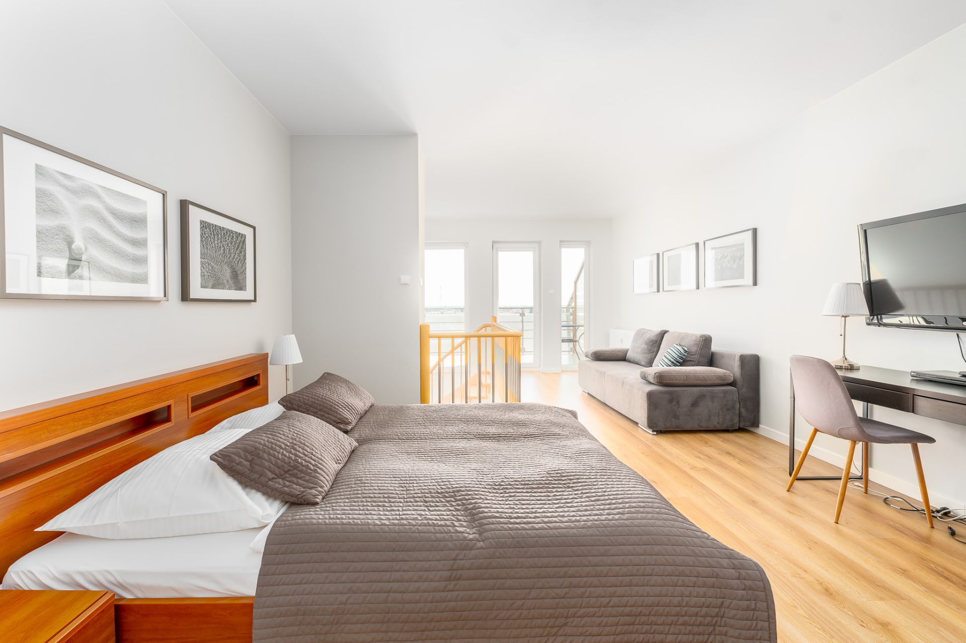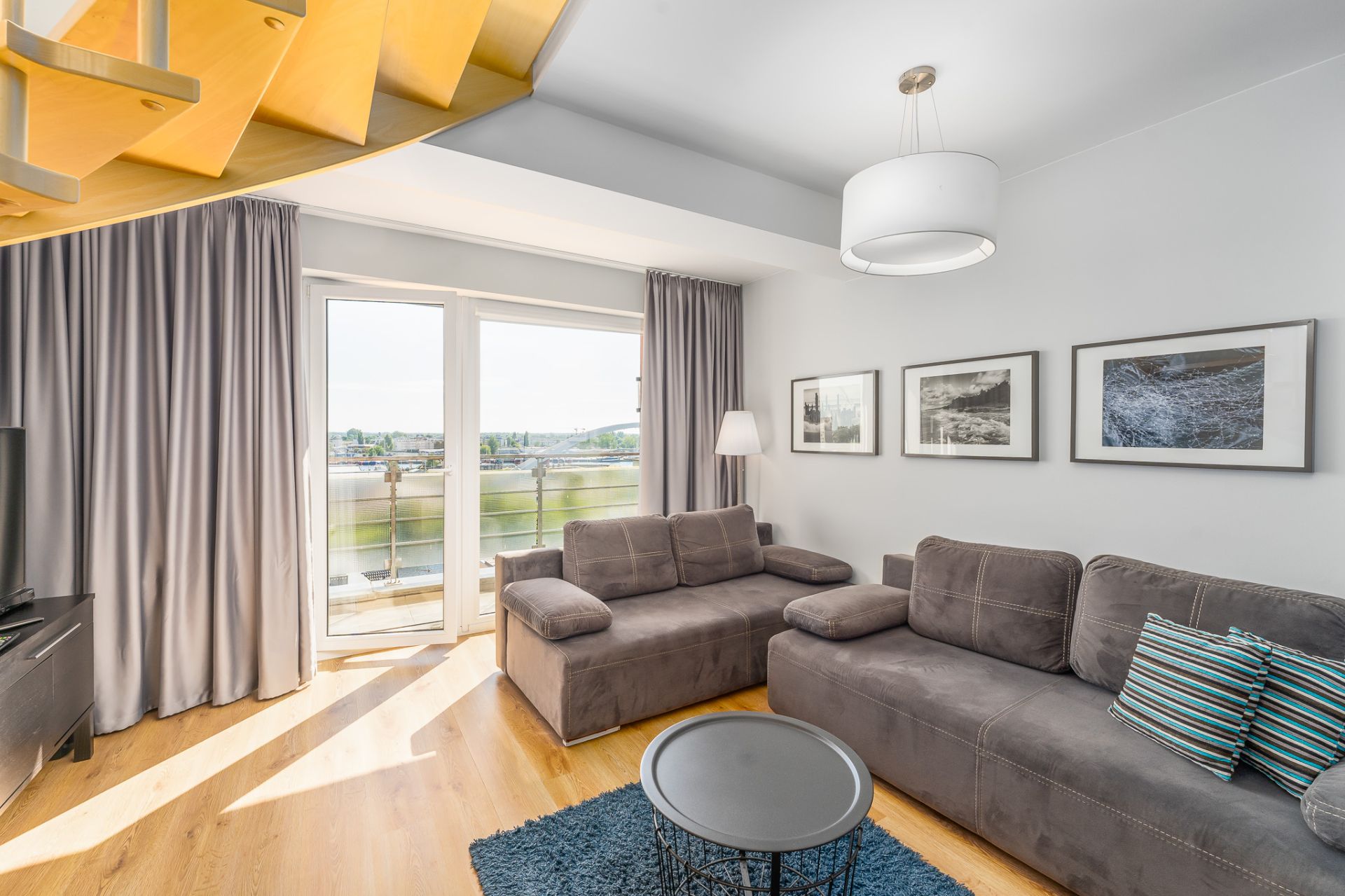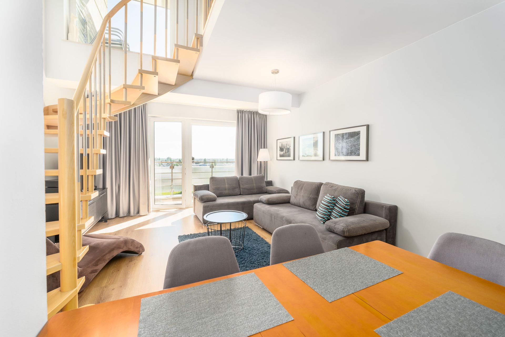 Zamieszkaj w naszym bestsellerowym, dwupoziomowym apartamencie z antresolą i bajecznym widokiem na port jachtowy – w jednej z najlepszych lokalizacji w Kołobrzegu, tuż przy marinie i zaledwie kilka kroków od plaży.