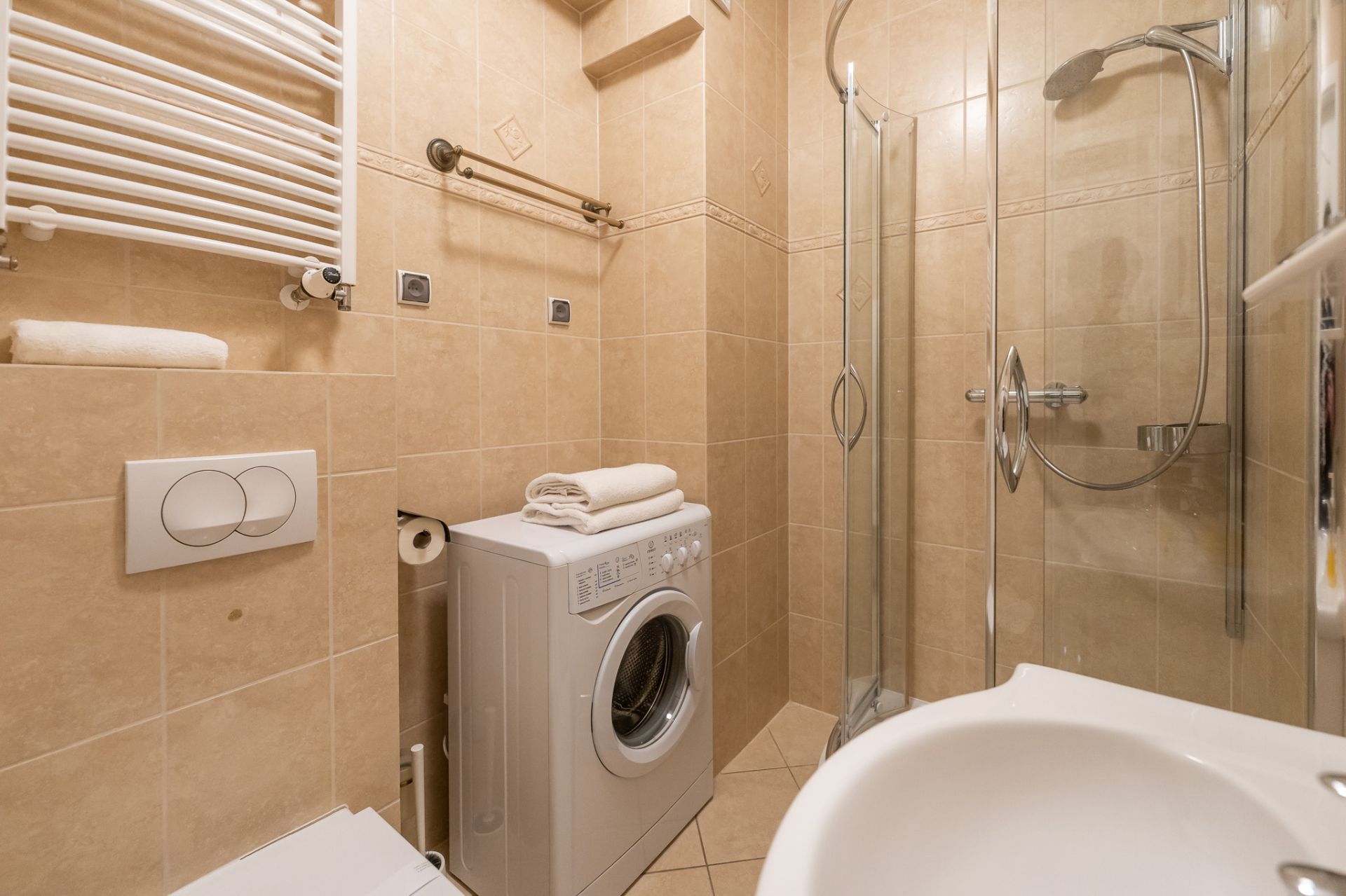 Pełne wyposażenie – również w pralkę, co sprawdza się przy dłuższych pobytach lub rodzinach.