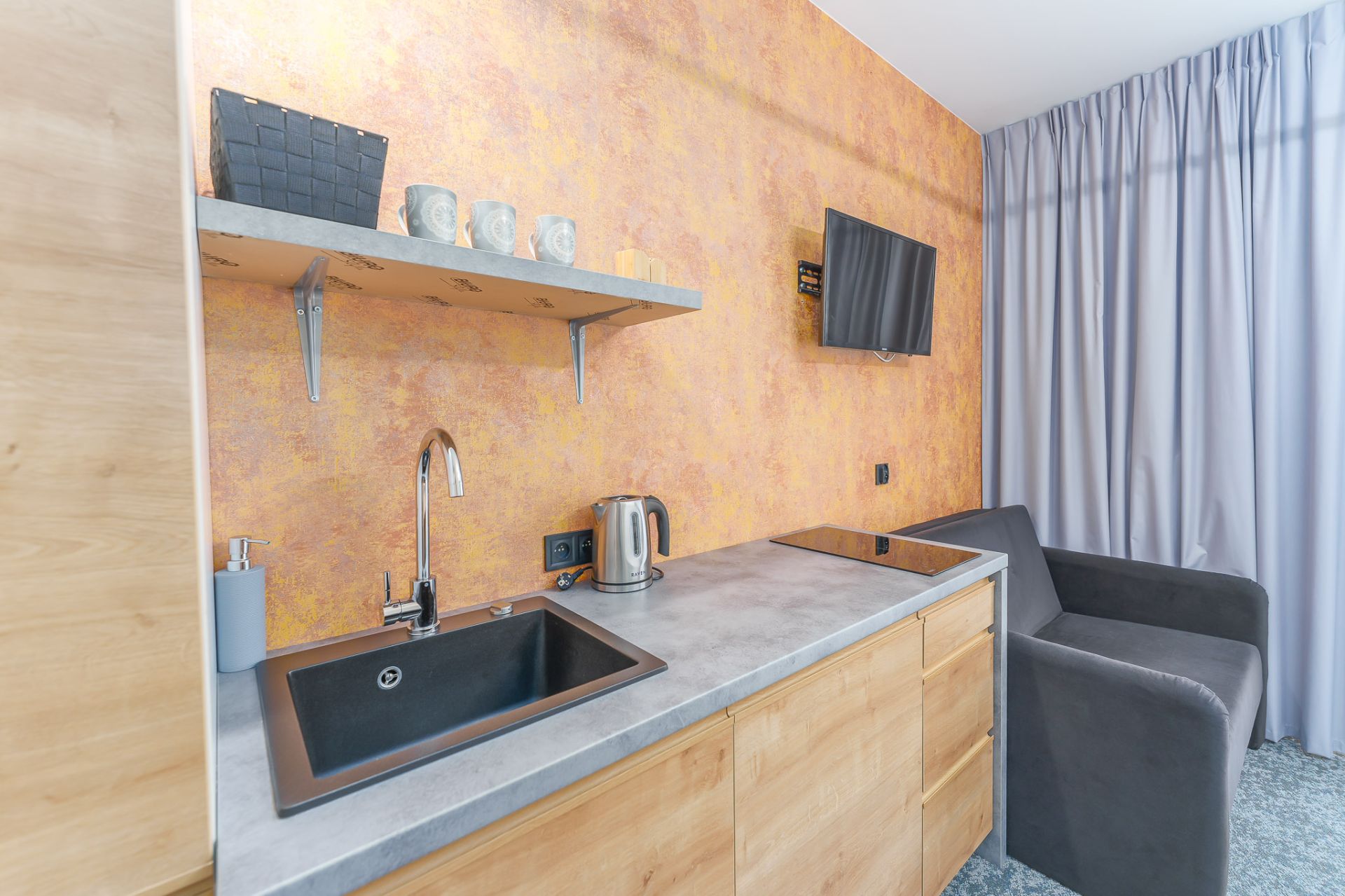 Przestronniejsze studio, idealne dla 3 osób – pary z dzieckiem, trzech przyjaciół lub singla, który chce mieć więcej miejsca.